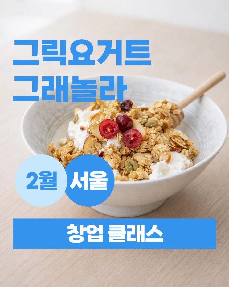 카페창업 클래스 그릭요거트 & 그래놀라 오늘배워서 내일 당장 판매가능한 레시피/포장법 까지! *그릭요거트 자격증은 선택 사항 입니다. 수제 그릭요거트 제조 뿐만 아니라 수제 그래놀라까지 함께 배우실 수 있는 창업 클래스 입니다. 수강문의 : 010 9457 9381 *서울/세종/대구에서 수강 가능하십니다. <수업 스케줄> (서울) 그릭요거트 마스터 2/19(목) 13:00~17:00 추가 수업 선택시 그릭요거트와 최고의 조합인 수제청, 콩포트, 퓨레까지 배우실 수 있습니다. <그릭요거트볼 실습> <수강문의> 010 9457 9381 <img src="https://blogthumb.pstatic.net/MjAyNjAyMDZfNzQg/MDAxNzcwMzU4MjcwODk0.F_EQkNWsu6i9AwjbhrKGJ1P8oxlZc2HBibIX37YbqFEg.8UsYydk1Gg5zIN4tIC549gheMQAc3tQ7nArJ55Q19B0g.JPEG/20260206_%B1%D7%B8%AF%BF%E4%B0%C5%C6%AE_%B1%D7%B7%A1%B3%EE%B6%F3_%281%29.jpg?type=s3" />