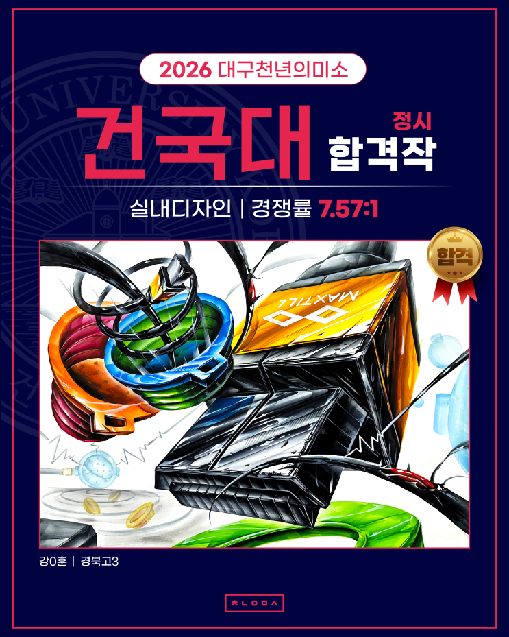 서울수도권미대입시&최상위권미대입시에 강한 대구천년의미소미술학원이 전해드리는 2026학년도 정시 건국대학교(글로컬) 합격재현작! 대구천년의미소 학생들의 놀라운 실력을 확인해보세요! 올해 경북고를 졸업한 강○훈 학생은 중앙대에도 합격한 정시2관왕! 언제나 성실하게 실기력을 다져왔던 학생! 정시2관왕의 원동력은 대구천년의미소 선생님들을 믿고 스스로를 믿고 최선을 다한 결과라고 이야기합니다. 2027학년도 대입의 다관왕은 과연 누가 될까요? 올해 입시도 사뭇 기대가 됩니다. 대구미술학원 입시미술전문 대구천년의미소가 만들어갈 새로운 입결신화도 기대해주세요! 상담문의 수성천년의미소 053-431-5005 명덕천년의미소....... <img src="https://blogthumb.pstatic.net/MjAyNjAzMDdfMTQx/MDAxNzcyODY0MTI4NzIw.LYAVjui-Wzn-x85QRLdtqAWFoehHXfq00CM3UOEGHdYg.ihUIoRZLiX9_DcWiWycFeBrZHzI5ouLHPFlJxURTWfMg.PNG/26%C7%D5%B0%DD%C0%E7%C7%F6%C0%DB_%B0%C7%B1%B9%B4%EB2.png?type=s3" />