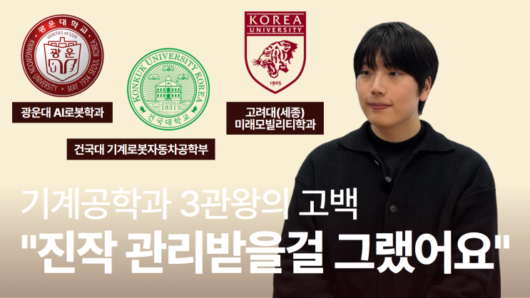 건국대 합격생 인터뷰 공개 지금 바로 영상에서 확인해보세요 합격생 인터뷰 영상 보러가기 https://youtu.be/XKF-JEaO6Zc?si=TdtX7CnembiAoMVr "조금만 더 빨리 관리받았더라면 어땠을까요?" 건국대, 광운대, 고려대(세종)까지! 기계공학 전공으로 3관왕을 거머쥔 합격생의 솔직한 인터뷰입니다. 지방에서 편입을 준비하며 겪었던 시행착오와, 김영편입 대구캠퍼스의 밀착 관리를 통해 슬럼프를 극복하고 합격할 수 있었던 생생한 노하우를 지금 공개합니다! 인터뷰에서 이런 이야기를 확인할 수 있습니다 ❓ 편입을 결심하게 된 가장 큰 계기는 무엇인가요? 편입영어 베이스는 어느 정도였나요? 어휘....... <img src="https://blogthumb.pstatic.net/MjAyNjAzMTZfMjYw/MDAxNzczNjQ3ODE4OTU1._2aBbQO4hzC0YAL1Xc4u1knv9c-uRYziiIRD_oV_H1Qg.ks60h2ZPAjQPEOl_jPCtTIEvNNn0H4wO4GmGFa5OsWMg.PNG/KakaoTalk_20260316_165600988.png?type=s3" />
