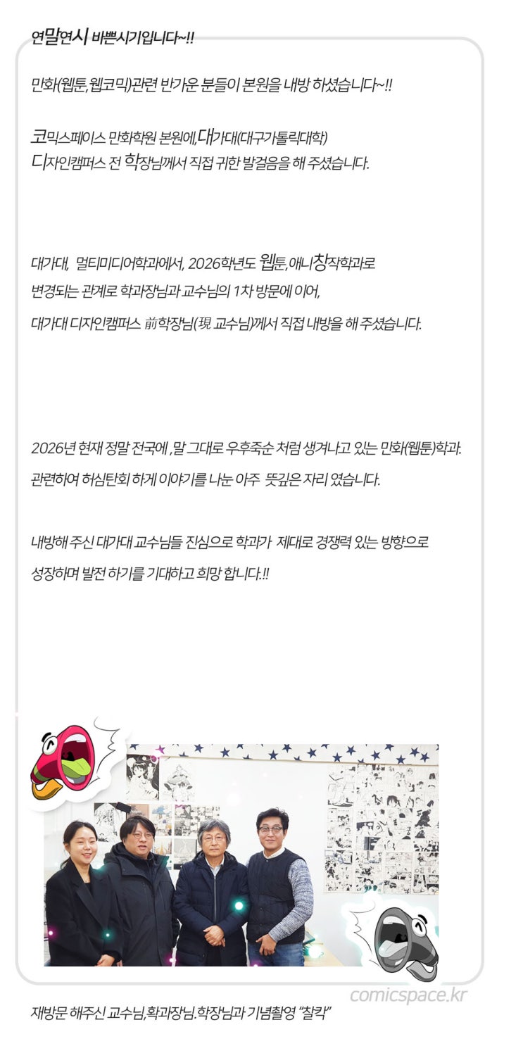 대가대 웹툰애니창작학과 교수님들,코믹스페이스 내방.