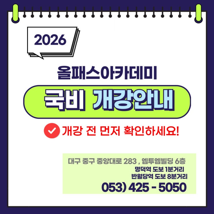 [대구 국비지원 컴퓨터회계학원] 올패스아카데미 2026년 교육과정 안내