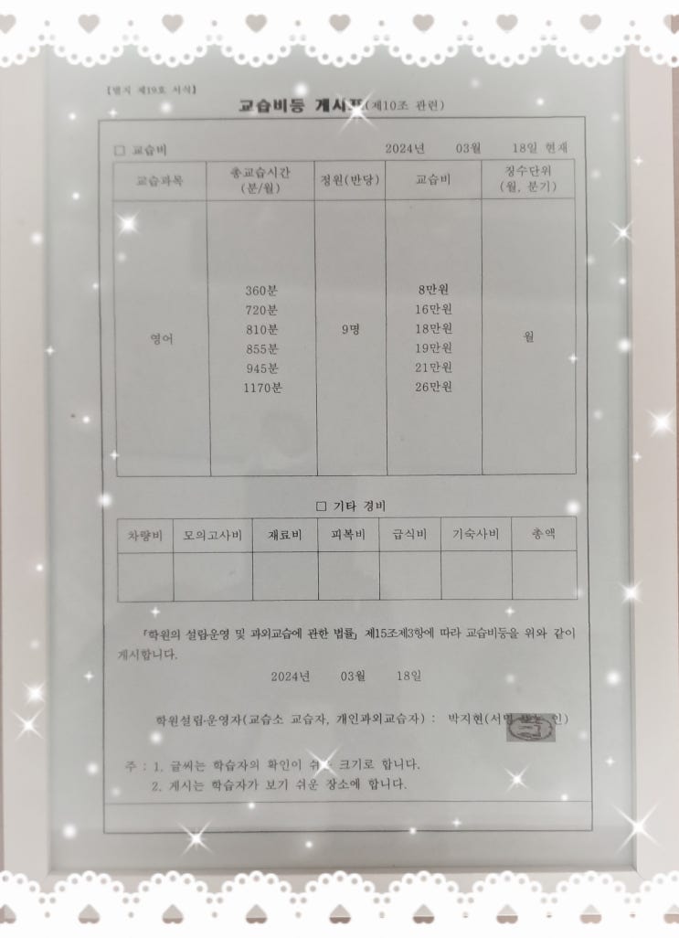 링키영어 신암점 교습비 총정리