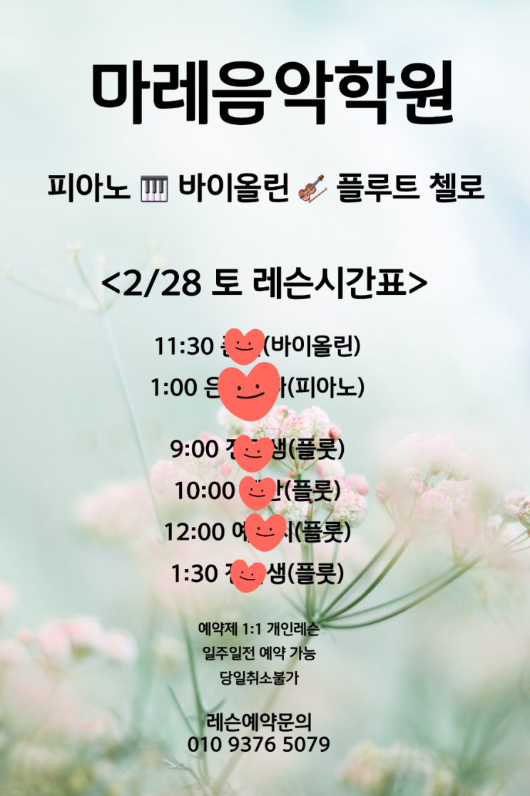 2/28 토요 피아노 바이올린 플루트 레슨