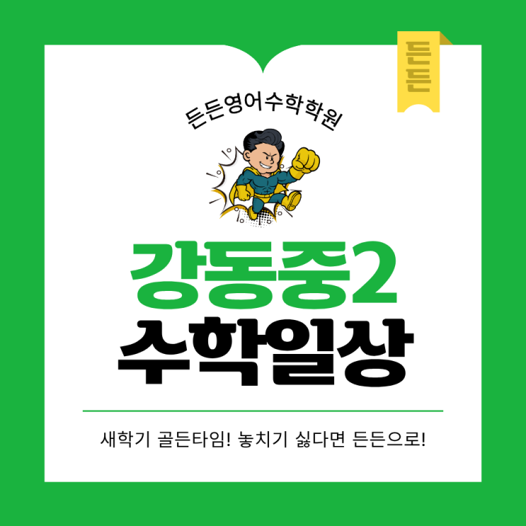 [든든영어수학학원 강동중 예비 중2 3월 1주차 수업 리뷰] - 강동중 수학학원 안녕하세요 동호지구에 위치한 든든영어수학학원입니다. 날이 풀리고 학생들이 개학을 하였습니다. 첫 단추를 잘 끼워야 한다는 말처럼 우리 든든 중2들은 개학 첫주를 어떻게 보냈는지 한번 포스팅 해보도록 하겠습니다 개학은 했지만 가장 중요한 함수 부분 진도가 남았습니다. 내신을 생각하면 진도를 그만두고 다시 앞 진도부터 복습을 해야되지 않나라고 생각이 들텐데요. 연립방정식과 연립방정식의 활용을 하며 x, y의 값을 구하고 순서쌍에 대한 개념을 적립한 이 시점에 함수를 필수적으로 나가줘야 함수에 대한 깊은 이해도를 가질 수 있다고 판단하여 남은....... <img src="https://blogthumb.pstatic.net/MjAyNjAzMDZfMjY3/MDAxNzcyNzkzNzA4NDgz.knluRsQyI1lRp5uH009F_GfvHBvPzUF1xTCWJwGaWfQg.WP5Zle0CuLqVk37LEXxjWhFYvJBGzA26sHTjrxg4ppgg.PNG/3.png?type=s3" />