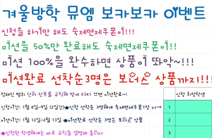 [방촌동 영어학원] 겨울방학 및 특강 안내 드립니다.
