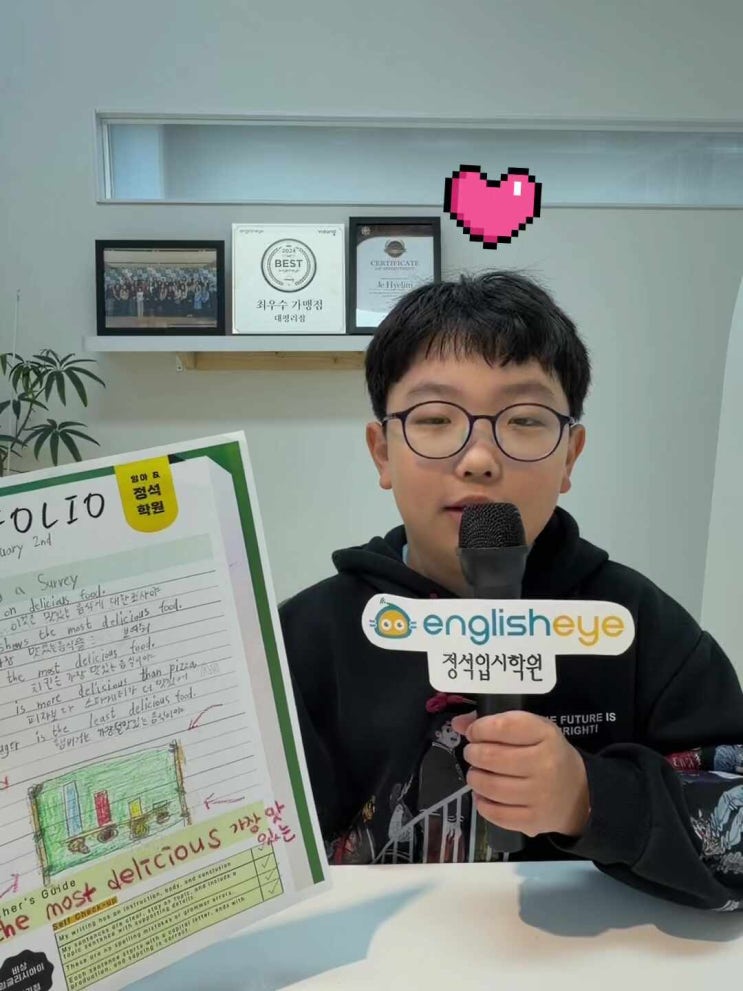 저희 정석학원은 writing & speaking에 강한 학원이지요~ 저학년이 어떻게 어려운 포트폴리오를 완성하고, 암기까지 하는지! 공개해 보려 합니다 ㅎㅎ 선생님이 다 써주는 것 절대 아니랍니다 ㅋㅋ 선생님은 문법 오류, 내용 첨삭만 해주십니다^^ 포트폴리오는 크게 4단계로 이루어지며 브레인스토밍~ 아이디어 정리 ~최종 자기만의 이야기 완성까지 스.스.로. 모두 합니다. 오늘 Neo학생은 The most delicious food (가장맛있는 음식) 설문조사를 해보았어요. 수업중 친구들에게 실제로 설문조사를 해보았더니 역시 압도적으로 치킨이 1위네요 ㅎㅎ <img src="https://phinf.pstatic.net/image.nmv/blog_2026_02_09_2024/ACkhYYft2i_08.jpg?type=f480x480" />
