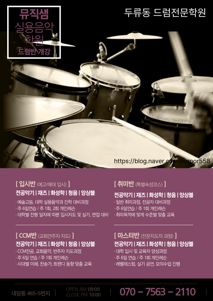 두류동 드럼전문학원 드럼반 개강 신년맞이 할인