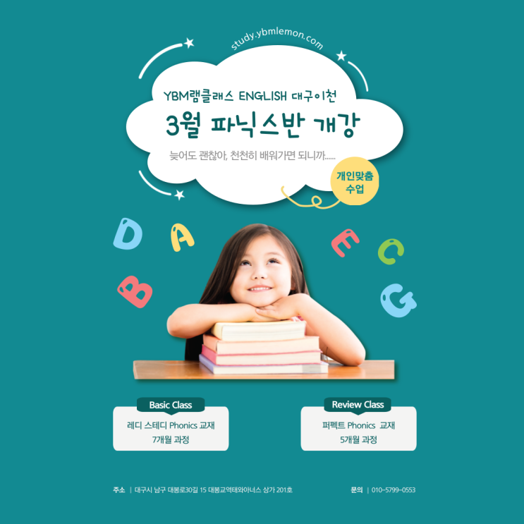 오랜만에 새 소식으로 인사드립니다. 새 학기를 맞아 3월부터 램클래스 영어에서 파닉스반을 개강합니다. 영어 학습에 첫 발을 내딛는 학생들을 위한 파닉스 기초반과, 파닉스를 놓쳐 현재 영어 학습에 어려움이 있는 학생들을 위한 리뷰반 수업을 시작합니다. Phonics 기초반은 Ready Steady 파닉스 교재로 세이펜을 활용한 수업을 합니다. 천천히 완전 학습을 목표로 수업합니다. 그리고 리뷰반은 Perfect 파닉스 교재를 통해 영어 단어나 읽기 학습 시 발음을 미리 듣지 않으면 읽기를 시도하기는 것에 두려움을 느껴, 장기적으로 영어 학습에 흥미를 잃을 수 있는 학생들을 위한 수업입니다. 파닉스 학습은 단어 → 읽기 → 말하기 학습으로....... <img src="https://blogthumb.pstatic.net/MjAyNjAyMjhfMjU5/MDAxNzcyMjg1OTAwNjY0.xCYQvk49ub0bAwnwMhRxM2Ilan2-T8DYuK37wuLVU4gg.Sq34XNZYp7R8xmUNedfYeMdj8v5iQewkM3KWS1dcjMkg.PNG/%C6%C4%B4%D0%BD%BA%B9%DD.png?type=s3" />