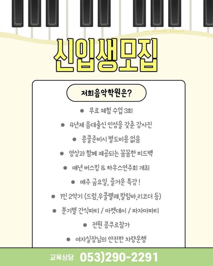 [대구칠곡3지구학정동빈피아노음악학원]신입생 모집