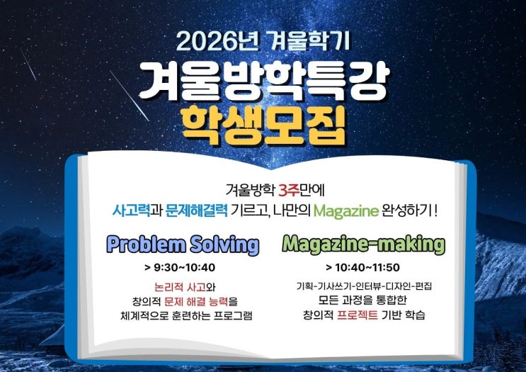[팬그램 침산 캠퍼스] 2026 겨울학기 방학 특강 학생 모집