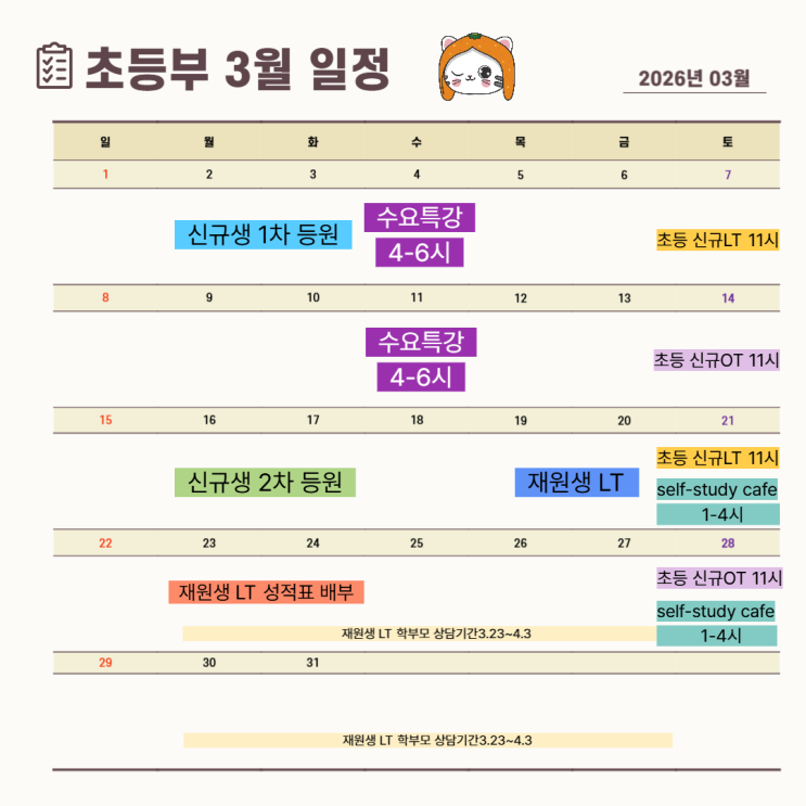 [침산동 영어학원 손샘영어 침산원_초등관] 2026년 3월 일정 안내