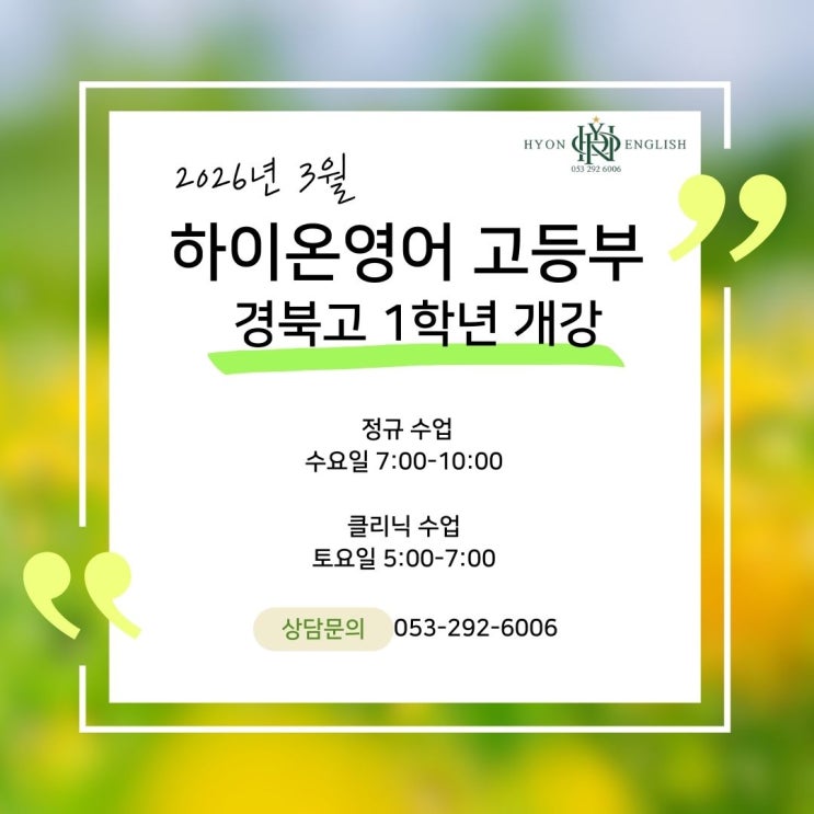 [하이온영어학원] 26년 고등부 개강 안내 - 경북고 1학년