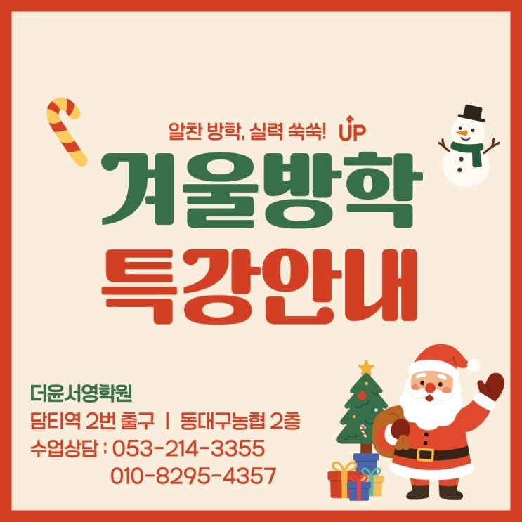 수성구 수학학원 ㅣ 더윤서영수학학원 2025 겨울방학 특강 수업 안내