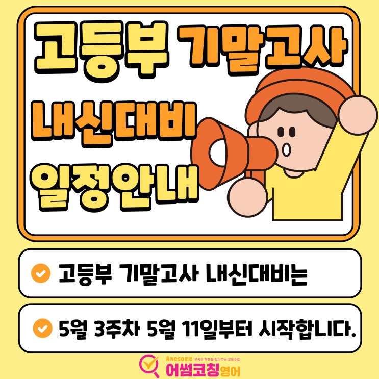 [월성동 어썸코칭영어학원] 고등부 기말고사 내신대비, 5월 11일부터 시작합니다.