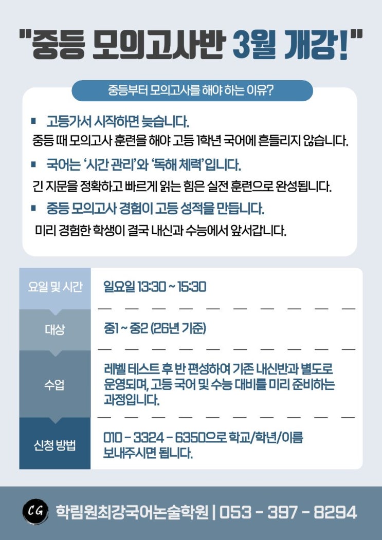 “2-3등급에서 1등급으로 고1,2 내신대비반 개설“ 3월 7일(토)개강!