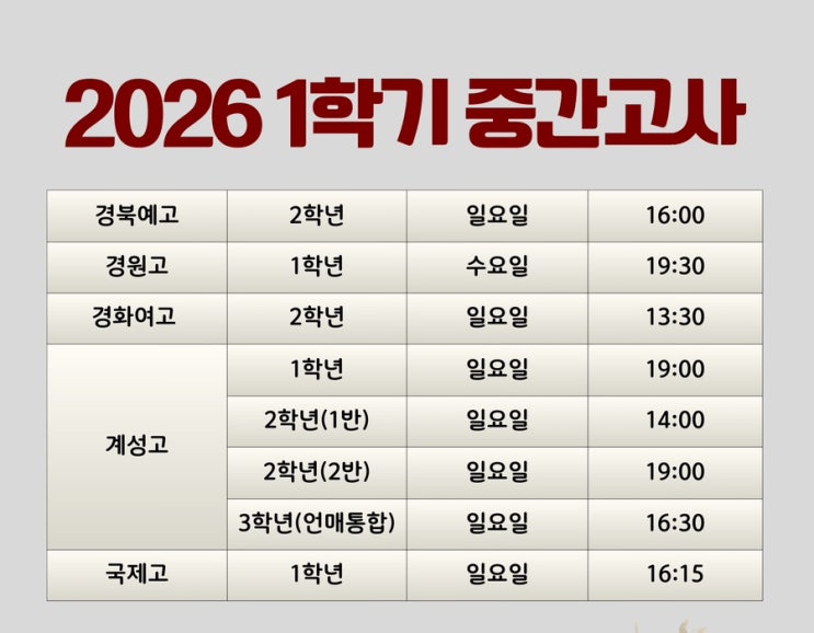 2026 1학기 중간고사! '내신 대비 시간' 안내