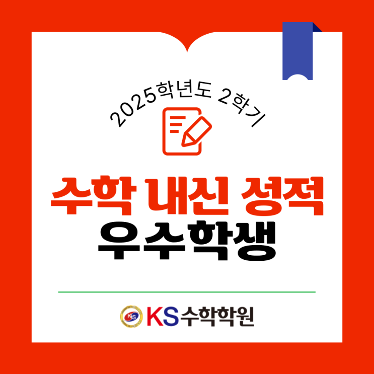 안녕하세요? 인정받는 수학학원! 다사수학학원 KS수학학원입니다! 현재 대입은 누가 뭐래도 수시가 대세입니다. 수시 전형 중에서도 학생부종합전형!!! 학종이 대한민국 상위권 대학들이 가장 선호하는 대입 전형이기 때문입니다!!! 학종에서 가장 중요한 건 바로 내신입니다!!! 오늘은 KS수학학원 재원생들의 2025학년도 2학기 수학 내신 성적 우수학생 현황을 공개합니다^^ KS수학학원에 재원 중인 우리 고등학생들의 2025학년도 2학기 수학 내신 등급 우수 현황입니다!!!^^ KS수학학원에 재원 중인 많은 학생들이 우수한 성적을 받아서 매우 자랑스럽습니다!!!^^ KS수학학원은 고1의 경우 수준별, 목표별 반 편성이 완벽하게 이뤄지고 학교 내....... <img src="https://blogthumb.pstatic.net/MjAyNjAzMjZfMTY2/MDAxNzc0NTA3MDAzMTU0.HVPhHIbvHwBgrL4e688K59cHePS1nwEQfrKr9VUhbuMg.6SHgULntqt4iqSFIm98fPaaTZKQJUGYKG6bpo7BaBgUg.PNG/%C1%A6%B8%F1%C0%BB-%C0%D4%B7%C2%C7%D8%C1%D6%BC%BC%BF%E4__%BA%B9%BB%E7%BA%BB-002_%284%29.png?type=s3" />
