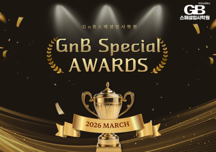 새로운 시작과 성장이 가득한 3월, 유가읍 영어수학 지앤비스페셜입시학원에서는 학생들의 노력과 성장을 축하하는 특별한 시간이 준비되었습니다. 바로 「GnB Special Awards」 시상식입니다. 유가읍 영어수학 지앤비스페셜입시학원은 단순히 공부만 하는 공간이 아니라, 학생들의 노력·성장·성취를 함께 축하하는 교육 공간입니다. 매달 진행되는 시상식을 통해 학생들이 스스로 목표를 세우고 도전하며, 그 과정에서 얻은 결과를 함께 나누는 문화를 만들어가고 있습니다. GnB Special Awards – 2026 March 이번 2026년 3월 GnB Special Awards는 학생들의 꾸준한 노력과 학습 태도를 격려하기 위한 시상식입니다. 유가읍 영어수학 지앤....... <img src="https://blogthumb.pstatic.net/MjAyNjAzMTVfNzAg/MDAxNzczNTM1MjYwOTUw.DoJJdQNOMq-4ooeaW0gWthkGVGebdlHQBuXuocpJ9jQg.ejURbxcZ_vjlWcgjjma-RvLziAY7rP8Ii1ENWxalRz8g.PNG/IMG%A3%DF6445.PNG?type=s3" />