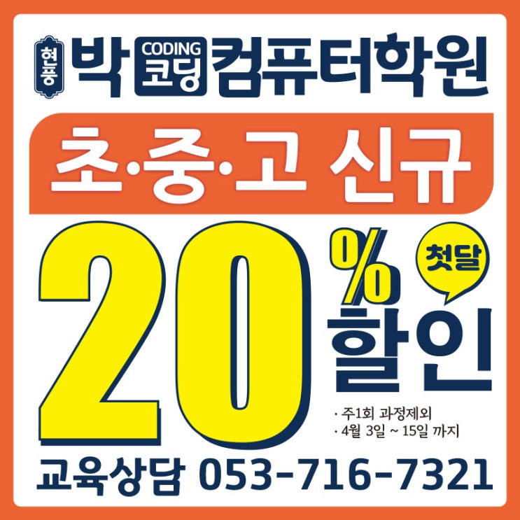 안녕하세요. 현풍/테크노폴리스 컴퓨터학원 대표! "박코딩컴퓨터학원" 입니다. 엑셀, 워드, 파워포인트 실무 및 자격증 (ITQ,DIAT) 컴퓨터활용능력1급 / 컴퓨터활용능력2급 자격증을 원하시는 우리 학생들에게 4월에도 수강료 행사를 실시합니다. 이번 행사는 박코딩컴퓨터학원 "현풍점" 에서만 실시됩니다. 자세한 상담은 053-716-7321 로 해주세요~ 방문상담 역시 미리 예약 부탁 드려요~ 단, 화/목은 상담이 불가합니다. 찾아오시는 길은 아래 지도를 참고하세요. <img src="https://blogthumb.pstatic.net/MjAyNjA0MDFfMjk0/MDAxNzc1MDM3NTI5OTI0.lxNtOGNB60VzLTuaOL-ZcGLqpxAFPzsPhcMR-BaS6_Yg.zLwxEhEOq11ZU1Hz4o2u-4IfWOUwxr_pAYBZuDlBhX0g.JPEG/2026_3%BF%F9%C7%D2%C0%CE%28%C7%F6%C7%B3%29.jpg?type=s3" />