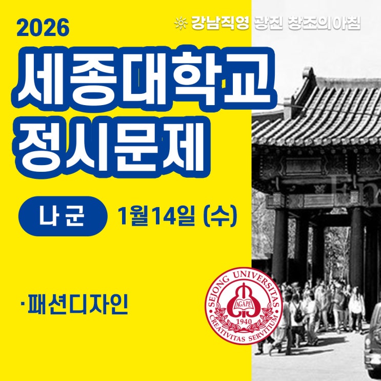 2026학년도 세종대학교 정시 나군 패션디자인 1월 14일(수) 실기 고사 주제 광진 창조의 아침
