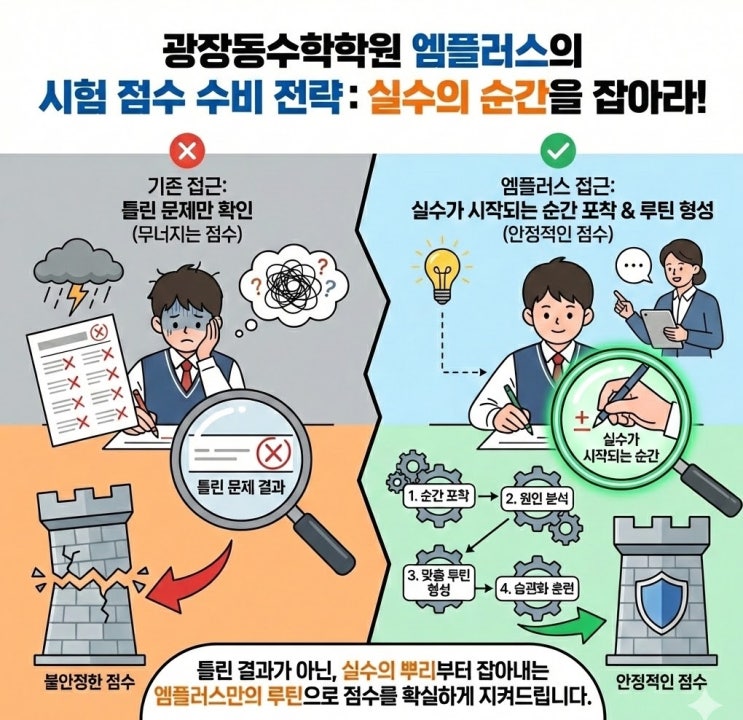 [광장동수학학원 엠플러스] 수학 성적이 들쭉날쭉한 이유, 실력보다 ‘컨디션 관리’입니다