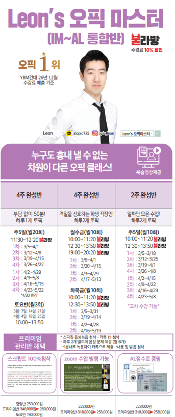 [YBM건대오픽] Leon's 오픽마스터 2026년 3월 시간표