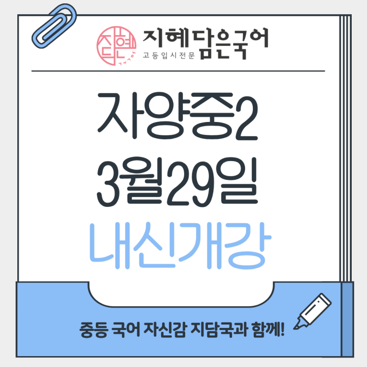 자양중 2학년 중간고사 내신 대비반 3월 29일 일요일 오후 1시 개강 자세한 사항은 학원으로 문의 바랍니다! 02-6398-5158 <img src="https://blogthumb.pstatic.net/MjAyNjAzMDRfNTMg/MDAxNzcyNjAzNjk0NjQ5.0tAqw3x6e2vcX_yhDnaQf0SFnvV_sC6uy94qVRzVi6Eg.fPrEZv3n8JiZsL_AakJcV7EAV8BFZ9lrCQauDfh41VMg.PNG/1.png?type=s3" />