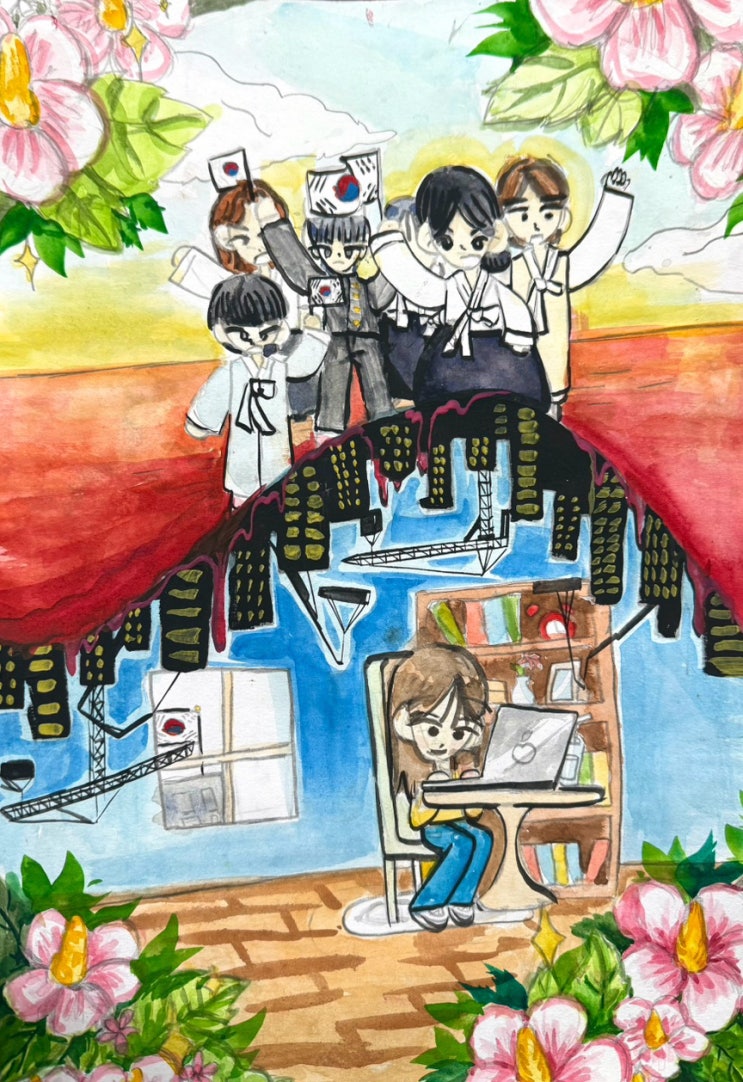 안녕하세요 :) 시몽SM미술학원입니다! 오늘은 기쁜 소식을 함께 나누려고 해요. 저희 학원 학생이 제3회 나라사랑 미술대회에서 수상하게 되었는데요, 그 작품을 여러분께 소개해드리려고 합니다. 이번에 개최된 나라사랑미술대회는 독립운동관련 주제로 나라를 사랑하는 마음을 그림으로 표현 해 보는 시간이였는데요. 저희 학원의 학생은 총 11명의 대상수상자 중에 (주)알파색채대표이사상 이라는 상을 수상하며 명단에 올랐습니다^^ 위 그림이 이번 대회의 수상작품인데요:) 저희 학생은 과거 독립운동을 위해 희생하신 분들 덕분에 오늘의 살기 좋은 대한민국이 만들어졌고, 지금의 우리는 자유롭고 행복한 삶을 누릴 수 있다는 메시지를 작....... <img src="https://blogthumb.pstatic.net/MjAyNTEyMDhfMTEy/MDAxNzY1MTgzMjcxMzE4.Ku_54HKx0bszDkoeKI4ltEa7YbS8X7XpzUV85KeYto0g.aIRkaFZ33SdBYEpK7k5z69np80-_tyEQhdPjx7UyuLMg.JPEG/output%A3%DF1342123489.jpg?type=s3" />