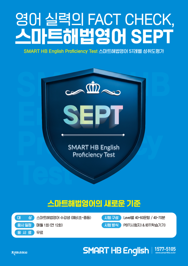 안녕하세요. 리더스해법에듀 영수 전문학원 입니다. 우리아이의 영어 학습은 잘 하고 있는지 궁금하셨죠? 드디어 스마트해법영어에서는 더욱 정교하고 체계적인 '성취도 평가 시스템인' SEPT (Smart HB English Proficiency Test)를 선보입니다. SEPT는? 스마트해법영어만의 0~56레벨 커리큘럼과 연동된 정밀 진단 시스템입니다. 스마트해법 단계 0레벨부터 56레벨까지 아이들이 학습한 내용을 정밀하게 체크하는 스마트해법만의 특화된 성취도 평가 입니다. 시험은 총 19레벨로 세분화 되어 진단 할수 있습니다. ※ Lexile지수와 AR지수 연계 ▣ 학교 평가 완벽 대비 듣기 , 말하기, 읽기, 쓰기 영역을 아우르는 평가 입니다. 실제 학....... <img src="https://blogthumb.pstatic.net/MjAyNjA0MDJfMjg2/MDAxNzc1MTI0MTgzODAx.6sjgpO0UZmDou_2iZNjzjSl3sRDpB7HDed4zb99AOzog.PhqYQB38WK2aDpSPC4eeJMCuzLufqTmtdWiGsSBOMWsg.PNG/SEPT_%C0%FC%B4%DC.png?type=s3" />