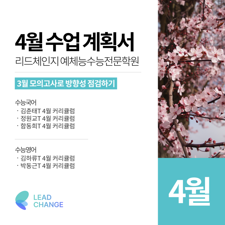 성동구 정시학원] 수능 국어,영어 전문학원 리드체인지 4월 정시 대비반 OPEN! 커리큘럼 안내 | 3월 모의고사 분석은 리드체인지에서!