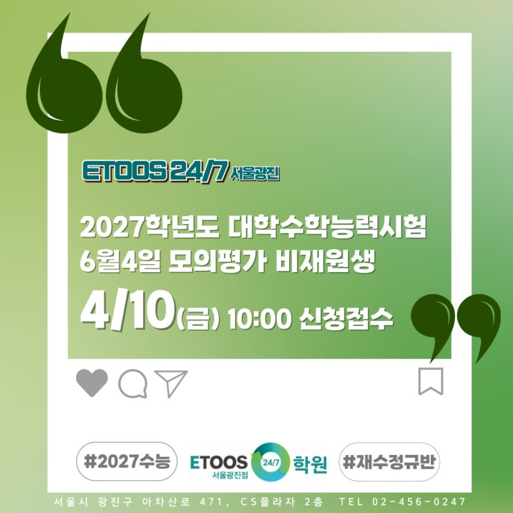 [이투스247 서울광진점_광진독학재수학원] 2026년 6월4일 평가원 모의평가 비재원생 신청접수