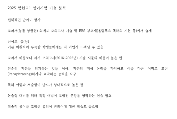 25년 함현고1 마지막시험 기출분석 (배보열강사)