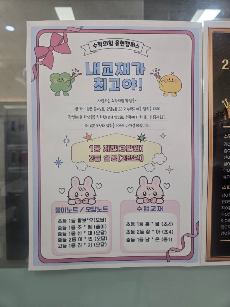 #용현동#수학학원 수학의힘의 작은 보상이야기