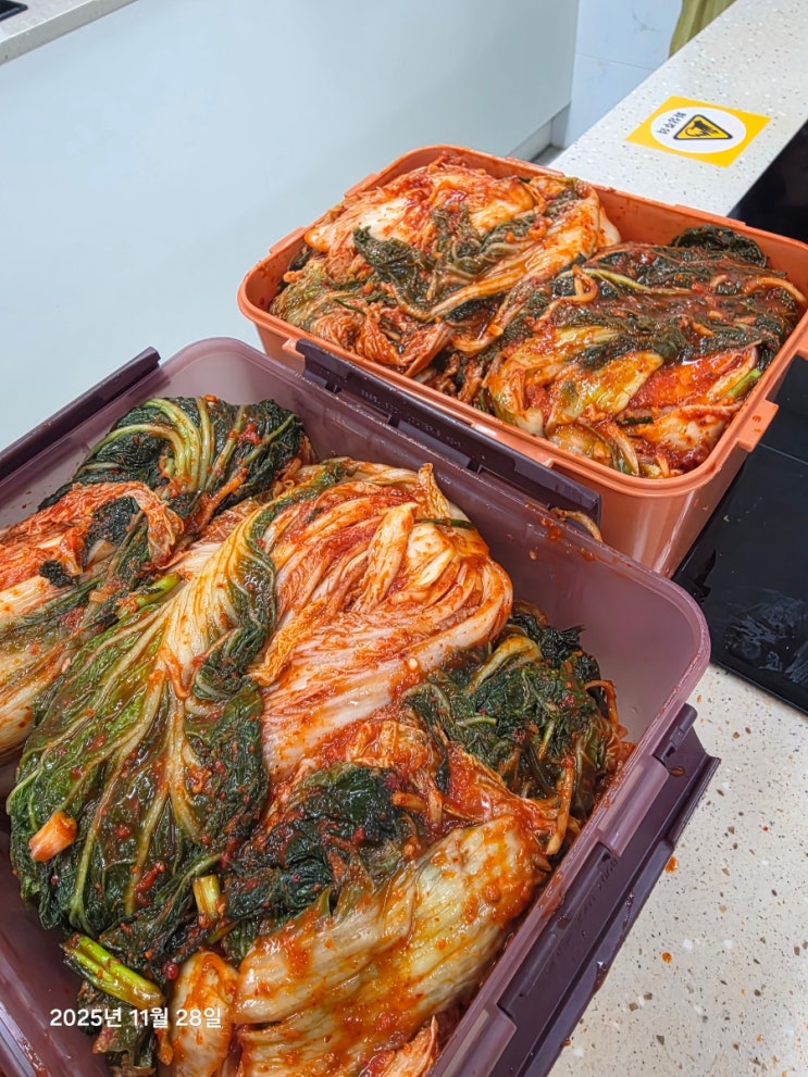 신월평생학습센터 — 배추김치 김장 수업 올해도 많은 분들이 기다려주신 조리기능장 하쌤의 배추김치 클래스가 진행되었습니다. 김치는 아무 재료나 섞는다고 맛이 나지 않죠. 이번 수업에서는 재료의 궁합과 맛의 구조부터 설명하고 맛있는 김치를 만들기 위해 중요한 핵심을 정확하게 짚어드렸습니다. ✔ 북어 + 채소 + 과일이 듬뿍 들어간 깊고 시원한 육수 끓이기 ✔ 김치 맛의 중심을 잡아주는 찹쌀풀 만들기 ✔ 원재료 비율 / 숙성 포인트 / 보관 팁까지 ✔ 가장 어려운 양념 배합과 속 넣기 실습 처음 김장에 도전한 분도, 매년 김장을 하시던 분도 “레시피가 정확해서 실패할 걱정이 없다” “이제 김치 사먹을 필요 없겠다” 라며 정....... <img src="https://blogthumb.pstatic.net/MjAyNTExMzBfMTA2/MDAxNzY0NDgxNjE3NTEw.igUQiaIDLZZKvW-HXtUqr5g1BOGBk8Xbo8C70Q0EoCkg.cvoHVm98-yYK3aDW9WRRc0yoIG5RnVBLWJB_mpByI2Ag.JPEG/900%A3%DF20251128%A3%DF120729.jpg?type=s3" />