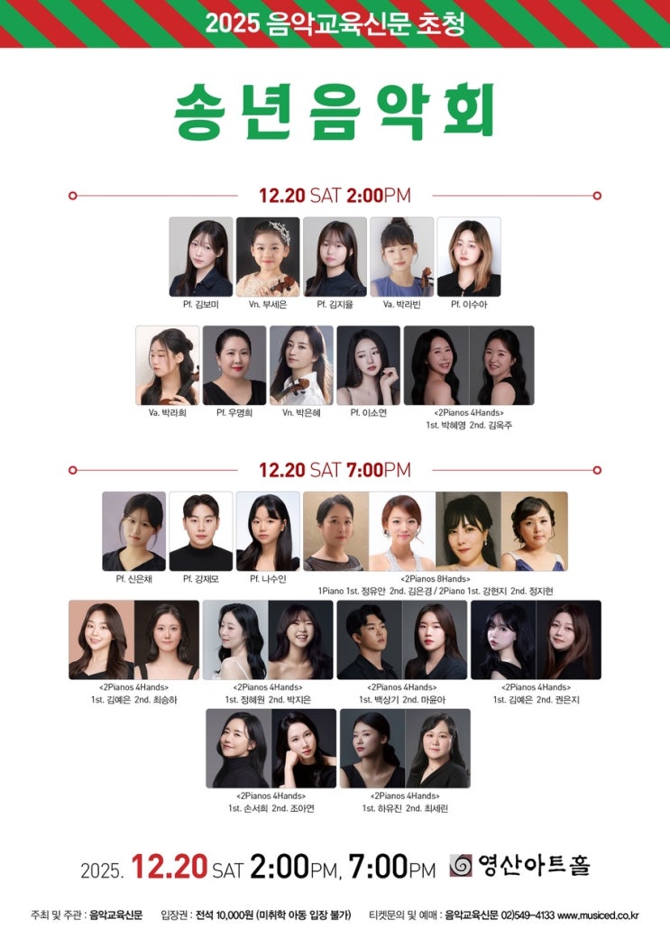 안녕하세요 :) 김예은 원장입니다 이번에 연주회를 두 번 진행하게 되어서 소식 알려드리려고 글 올립니당ㅎㅎ 일주일 간격으로, 두 공연 모두 투피아노 포핸즈 무대로 준비하고 있어요!^^ 첫 번째 공연은 음악교육신문에 초청 송년음악회이고, 센트에서도 자주 뵙는 은지 선생님과 함께하는 무대예요 오랫동안 함께 연주해 온 만큼, 호흡이 편안한 음악을 들려드릴 수 있을 것 같아요 그리고 일주일 뒤 두번째 공연은 같은 형식으로 한 번 더 투피아노 무대를 준비하고 있습니다! 러시아 음악으로만 구성된 프로그램이에요ㅎㅎ 제 파트너쌤이 대구분이시라ㅜㅜ 대구까지 왔다갔다.. 힘들지만 설레는 연주입니다!ㅎㅎㅎ❤️ 학원에서....... <img src="https://blogthumb.pstatic.net/MjAyNTEyMDdfMjE3/MDAxNzY1MTE5NTg2OTk5.Fl092NwTT_siZOyqz0-QDAOtdsZVGIXBMgIoopGFePwg.T6PTnaUazjsW2mZDomO2ULvJpE_18XalfT_3pGZ1xbog.JPEG/IMG%A3%DF3986.JPG?type=s3" />