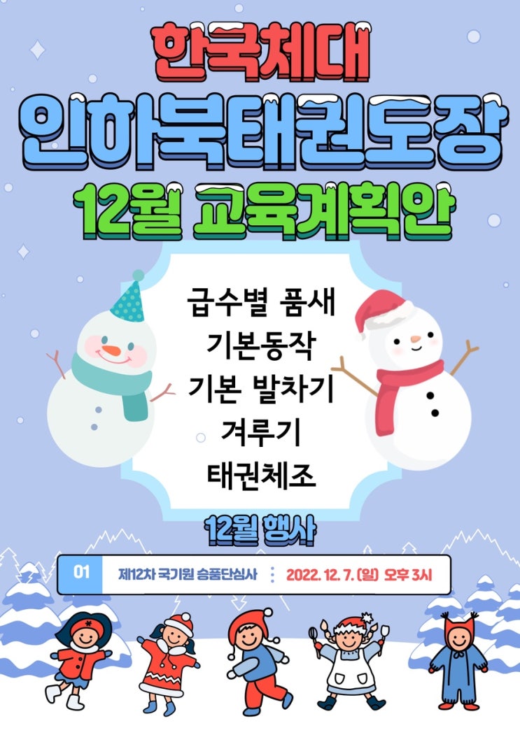 미추홀구 용현동 숭의동 한국체대 인하북태권도장 12월 수련계획안