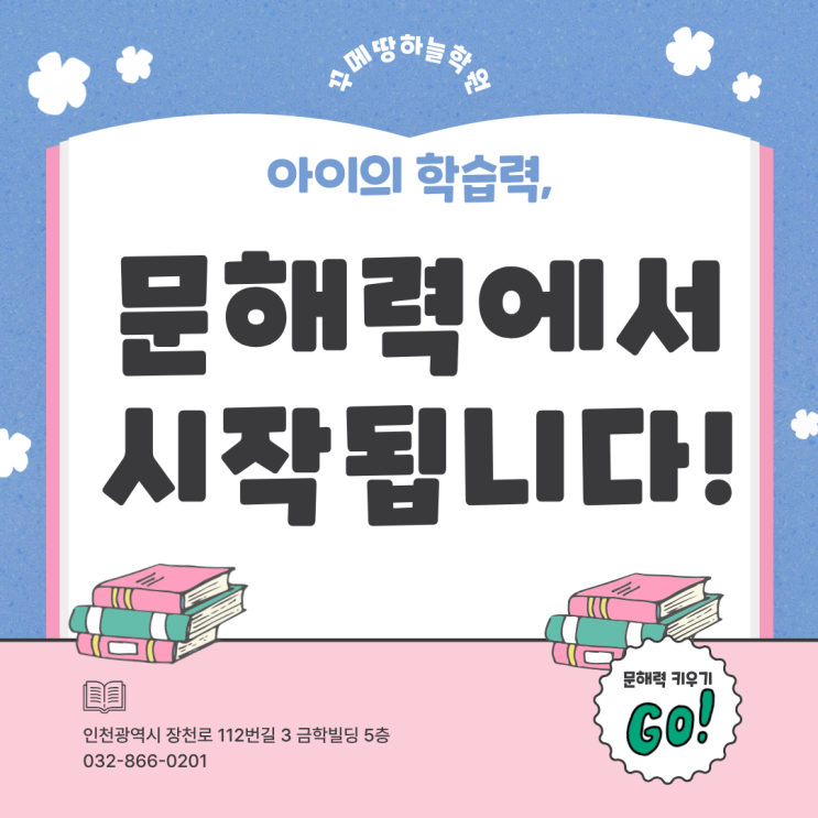 안녕하세요! 인천 미추홀구 숭의동에 위치한 초중등 영어 수학 전문 맞춤형 코칭 전문 학원 꾸메땅하늘학원입니다. 최근 교육계에서 가장 많이 언급되는 단어는 단연 “문해력(읽기·이해력)” 입니다. 국어를 잘하기 위해서만 필요한 능력이 아니라, 수학·과학·사회 모두를 공부하는 데 필수적이고 가장 기본적인 학습 능력이기 때문이에요. 아이의 문해력은 단순히 글을 ‘읽을 줄 아는 것’을 넘어, 문장을 이해하고, 문제의 의도를 파악하고, 스스로 사고하는 힘까지 포함합니다. 그래서 문해력은 모든 공부의 기초 체력이라고 불립니다. 문해력이 중요한 이유 !! – 문해력이 곧 학습 능력 문해력이 부족하면 아이는 단원을 이해해도 문제를....... <img src="https://blogthumb.pstatic.net/MjAyNTEyMDFfMTkg/MDAxNzY0NTcwNjE4NTk3.WQnfln6BKZOjJniLWjJ4z2qwiUuyqBd-fj14o-U7Jl0g.nuZEiCJkM5NftPihDskf878SkwpqAudrLaMGNPktLg8g.PNG/7.png?type=s3" />