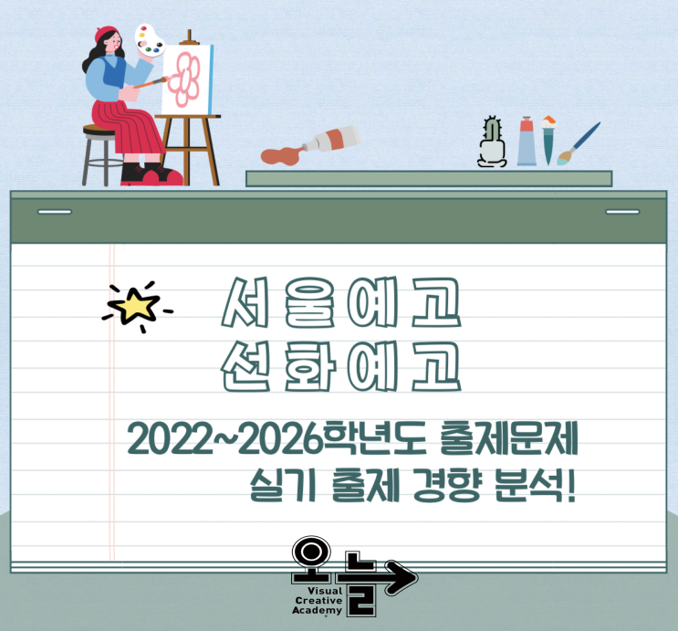 안녕하세요! 인천예고입시 미술학원 오늘 입니다! 오늘은 서울,선화예고 최근 5년 (2022~2026) 출제문제로 보는 실기 트렌드 변화 분석을 간단히 해보려 합니다! 예술고등학교 미술과 입시는 더 이상 정해진 방식의 그림 실력만으로 대비할 수 있는 시험이 아닙니다. 특히 서울예고와 선화예고는 최근 몇 년간 출제 방식과 문제 성격에서 뚜렷한 변화를 보여주고 있으며, 이 변화는 단순한 트렌드가 아니라 상위권 미대 입시로 이어지는 방향성과도 깊이 연결되어 있습니다. 이번 포스팅에서는 서울예고 · 선화예고 최근 5년간 출제문제를 바탕으로 어떤 능력을 평가하고 있는지 그리고 그 변화에 어떻게 대비해야 하는지 인천예고입시 미술학원....... <img src="https://blogthumb.pstatic.net/MjAyNjAxMzBfMTcx/MDAxNzY5NzU1MTg0NDcx.x7Py8SBKpU88E9J-OiokwrjCUDMHmI1ESykTPt3Y4iQg.iUn6DdZmsynMh9lNgGd6JZpjQjuG1DasWV5-VVLv3FMg.PNG/image.png?type=s3" />