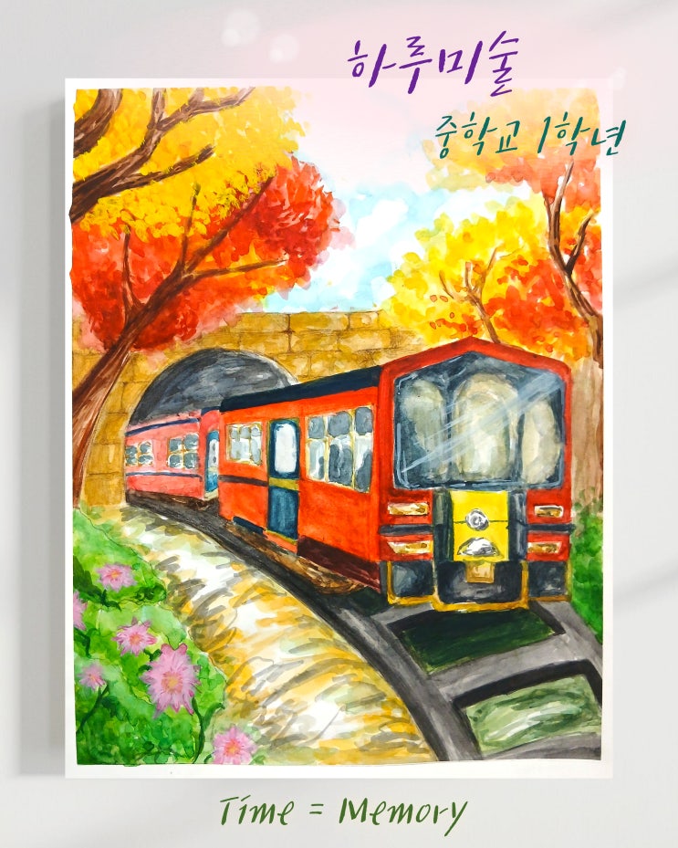 안녕하세요, 하루미술입니다! 주안 더월드스테이트 상가(최앤박소아청소년과 의원 옆)에 위치한 미술학원입니다. 오늘은 중학생의 미술작품! <Time = Memory>를 소개해 드리려고 합니다. 이번 작품은 단풍나무가 가득한 철로 위를 달리는 빨간 기차를 주제로 한 풍경화로, 세심한 관찰력과 색감 표현, 붓 터치가 돋보이는 소중한 작품입니다. 작품 제목 “Time = Memory”의 의미 이번 작품의 제목은 “Time = Memory”, 즉 지나간 순간은 기억으로 남는다는 의미를 담고 있습니다. 학생은 이 작품을 통해 지나가는 순간의 아름다움과 따뜻함을 기억 속 한 장면으로 담아내는 감각을 보여줍니다. 단풍과 기차는 각각 계....... <img src="https://blogthumb.pstatic.net/MjAyNjAxMTNfMzEg/MDAxNzY4Mjc2MjU1MTM5.6hrWyJC3x3UDaWGf5BWD_C4ixohmaHic6EtKlvRiQAog.ge75w12tPV8n58fIyjBHKzNsmzqNffYk7k64leLXUwog.JPEG/%C8%B8%C8%AD%B5%E5%B7%CE%C0%D7_%C7%CF%B7%E7%B9%CC%BC%FA.jpg?type=s3" />
