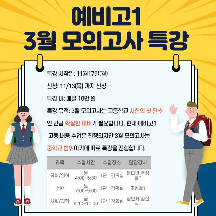 [청담바름학원] 예비고1 3월 모의고사 특강 안내