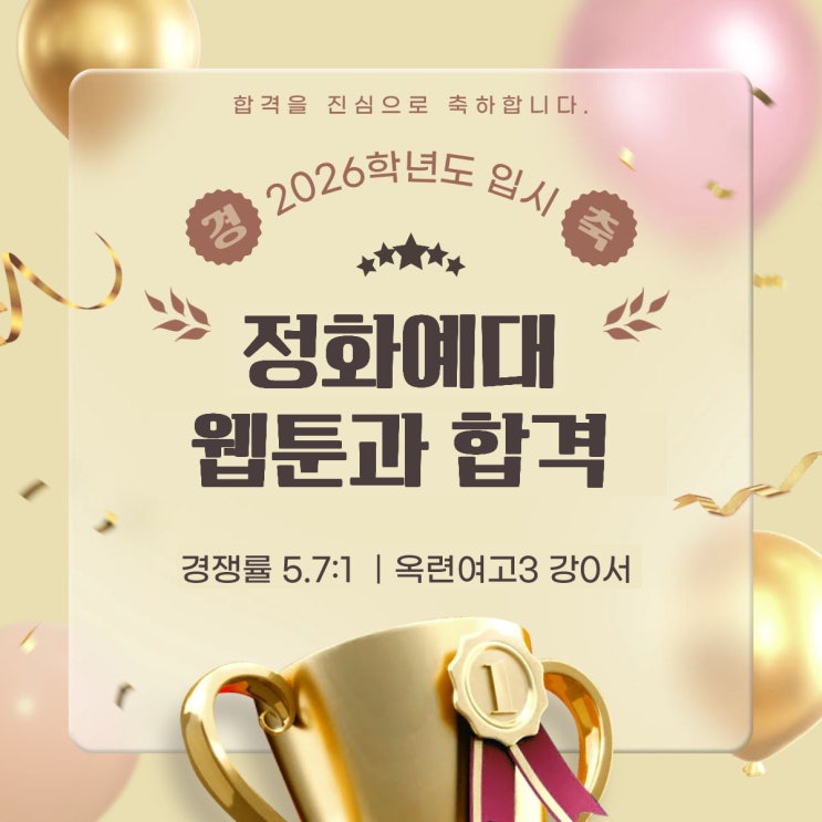 2026학년도 애니메이션·웹툰 진학 대거 합격 소식! 올해도 우리 학생들이 놀라운 성과를 보여주었습니다. 치열했던 입시 준비 속에서도 포기하지 않고 끝까지 집중해준 모든 친구들, 정말 자랑스럽습니다. ✅ 정화예대 웹툰과 합격 옥련여고3 강0서 학생 모두 정말 수고 많았어요 학생들의 꾸준한 연습, 수없이 반복한 수정, 그리고 포기하지 않은 마음이 만들어낸 결과입니다. 앞으로도 여러분의 꿈을 응원하며, 더 큰 성장을 함께 만들어가겠습니다. 정말 진심으로 축하합니다! ✨ 상담문의 방문상담 : 화-금 2pm - 9:30pm / 토 10am - 9:30pm 전화상담 : 032-424-1472 주차 2시간 무료입니다. #인천웹툰학원 #인천미술학원 #송....... <img src="https://blogthumb.pstatic.net/MjAyNjAyMTFfMTE1/MDAxNzcwODAxMzgyODE5.XjL4_QACBe5uhJeQJo_iGeUsjxCvLlR9W1ox3Acr-U0g.zRcUbAbrtumBgd--upLc8eqPs6weJrDI_2r5i0er0qUg.JPEG/%C1%A4%C8%AD.jpg?type=s3" />