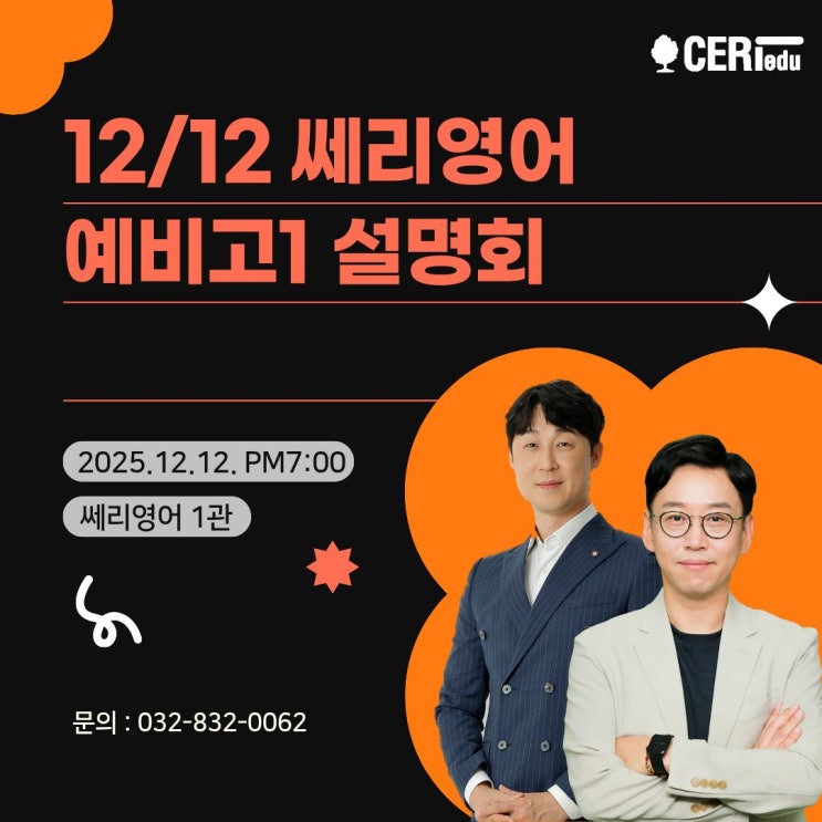 중학교 영어성적, 고등학교에서도 그대로 이어질까요? 중학교 때 영어 90점, 100점을 안정적으로 유지하던 학생조차 고등학교에 올라가면 성적이 흔들리고, 심지어 3등급 이하로 떨어지는 경우가 있다는 사실, 알고 계셨나요? 많은 중3 학생과 학부모님께서 “지금 성적이면 고등학교에서도 괜찮겠지”라는 막연한 기대와 동시에 "고등영어는 어렵다던데…"라는 불안감을 가지고 있습니다. 하지만 걱정만 한다고 해결되지는 않습니다. 해결책은 정확히 알고, 미리 준비하는 것입니다. 그래서 이번 쎄리영어 예비고1 설명회가 준비되었습니다. 왜 중학교 영어 성적이 고등영어로 이어지지 않을까요? 고등학교 영어내신은 단순히 단....... <img src="https://blogthumb.pstatic.net/MjAyNTEyMDRfODEg/MDAxNzY0ODMxNDI1MDYw.oyV1Wssg87zfUv8hZ8Uw2IpxaM8UKsv4lYVBOL2FKzQg.BHD-2werF6mAyfGBZDdMVF_0qzbkfGQWZ56NmtkGqYcg.JPEG/%BD%EA%B8%AE%BF%B5%BE%EE_%BF%B9%BA%F1%B0%ED1_%BC%B3%B8%ED%C8%B8_%282%29.jpg?type=s3" />