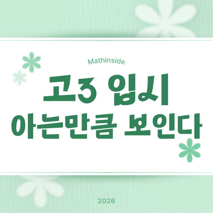안녕하세요 아이들의 학습 방향을 함께 고민하는 매쓰인사이드 수학학원입니다 . . . . . 새 학기가 시작되면 특히 고3 학생들에게는 ‘입시가 시작됐다’는 실감이 나는 시기입니다. 최근 EBS 뉴스의 입시 프로그램에서 이 시기에 고3 학생들이 반드시 알아두어야 할 입시 정보들이 소개되었습니다. 뉴스를 보며 저 역시 공감했던 부분이 있습니다. 요즘 입시는 단순히 “성적이 좋다”만으로 설명하기 어려운 구조가 되어가고 있다는 점입니다. 전형구조가 핵심! 먼저 알아야 할 것은 ‘전형 구조’입니다. 뉴스에서 설명된 내용 중 학생들이 가장 많이 헷갈리는 것이 바로 “○○ 위주 전형”이라는 표현입니다. 여기서 중요한 기준은 아....... <img src="https://blogthumb.pstatic.net/MjAyNjAzMDRfMzkg/MDAxNzcyNTk5MTY5NTQw.RX0_7doDrxhGdt-zQDf4KAKKW4jnHyVkR3iOldTvBmog.Qb-v9L--Jc37UKXCpZLu_XPPs5NrHuNgKwbiQX8xkdUg.PNG/%C1%A6%B8%F1%C0%BB-%C0%D4%B7%C2%C7%D8%C1%D6%BC%BC%BF%E4_-001_%286%29.png?type=s3" />