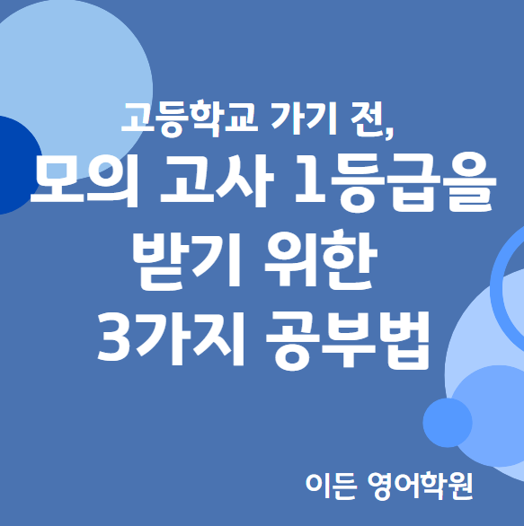고등학교 가기 전, 입학 후 모의고사 1등급을 받기 위한 3가지 공부 방법 안녕하세요! 새 학년 새 학기를 시작하는 시기가 왔습니다. 학생들뿐만 아니라 학부모님들도 다짐, 긴장, 설렘 등 다양한 감정이 복합적으로 드실 텐데요, 오늘은 고등학교 영어에서 1등급을 받기 위한 공부 팁을 알려드리고자 합니다. 고등학교 입학 전 그리고 입학한 후에도 필승할 수 있는, 모의고사에서 1등급을 받기 위한 공부 방법 3가지를 소개해 드리겠습니다. 이 방법들은 단순히 점수를 높이는 것을 넘어, 영어 실력을 탄탄히 다지는 데 큰 도움이 될 것입니다. 또한 현재 기본기가 부족한 고등학생에게도 유용합니다. 단어 기본기 갖추기 영어 공부의 가장 기....... <img src="https://blogthumb.pstatic.net/MjAyNTAyMTJfMTc0/MDAxNzM5MzQ0MDA1NzIw.SGeT5VRo6OhISy8WsJ1Cd4-wVBQE05a1exaNJEFzD10g.43Xu2tRTMaewjGnkHLE5GwE74eg2KBlZGFARaEIOiEAg.PNG/image.png?type=s3" />