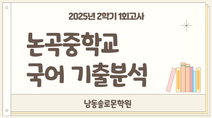 논현동 중학학원 남동솔로몬학원에서 2025학년도 2학기 1회 고사 논곡중학교 1학년과 2학년의 국어 기출분석을 하고자 합니다. 이제 중학교에 올라와서 두 번째로 시험을 치르게 되는 1학년 친구들은 1회 고사에서 틀린 문제를 확인하고 틀린 유형의 문제를 대비하는 준비를 통해 올해 마지막 시험을 잘 대비하도록 합니다. 2학년 친구들도 시험 후 틀린 문제를 확인하는 습관을 통해 다음 시험을 대비하도록 합니다. 국어 과목은 2학기에 문법에 대한 문제들이 많이 출제되기 때문에 철저한 대비가 필요합니다. 모두들 열심히 노력해서 원하는 결과를 얻기를 바랍니다. 지금부터 논현동 중학학원 남동솔로몬학원에서 2025년 2학기 1회 고사 논곡....... <img src="https://blogthumb.pstatic.net/MjAyNTEyMDVfMjgg/MDAxNzY0OTA4MjM2MjAx.y6onylJHppuokl4tWU73701xJoeRtm56c1nuaWOOL44g.7V5S3AYO-LBaiWKKe3OHB3mKfZTgRfmg51BcQGoGOL0g.PNG/%B1%B9%BE%EE%B4%EB%B9%AE.png?type=s3" />