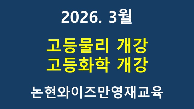 26년 3월부터 고등물리, 고등화학 수업이 시작됩니다. 고등과학에 관심있으신 분은 센터로 문의 바랍니다. 고등통합과학은 중3대상으로 2월까지(1,2전과정) 진행되오니 관심있으신 분은 센터로 문의 바랍니다. <img src="https://blogthumb.pstatic.net/MjAyNTEyMDhfODQg/MDAxNzY1MTc4MzU0NTE0.nhIjZJ-g-m1xDV3VrlIsUvO_dVf6SC8Tf_NUmiKs5NMg.5e1KVMLg0tbU9terzNYnwYCAsgylJdid9AGap7fKNv8g.JPEG/%BD%BD%B6%F3%C0%CC%B5%E52.JPG?type=s3" />