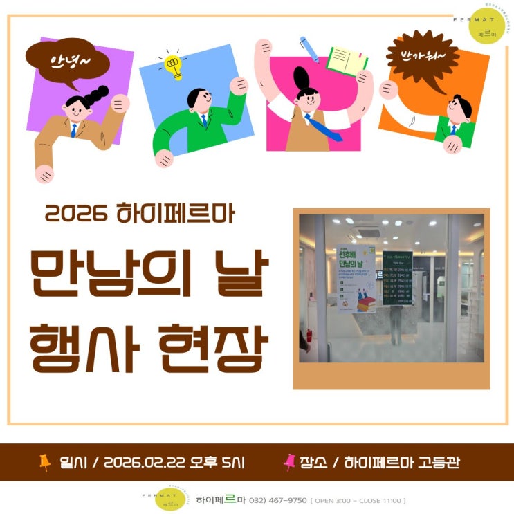 해를 거듭할수록 더욱 깊어지고 단단해지는 우리들의 만남. 열정이 용광로처럼 활활 타오르던 그 현장! 진심 어린 조언과 공감이 오갔던 깊고 진솔한 대화의 시간! 1학년 신입생부터 졸업생 선배들까지, ‘공부’와 ‘진로’라는 같은 꿈을 품고 한자리에 모여 서로의 이야기에 귀 기울이며 함께 고민하고, 함께 다짐했던 우리들!! 지금부터 2026년, 그 어느 때보다 뜨거웠던 <선후배 만남의 날> 현장 소식 시작합니다! 학교별 생생 현장 스케치 인제고 : "어색함은 가라! 씩씩한 대통합의 순간" "처음엔 기어들어가는 목소리였지만, '제대로 인사!' 한마디에 군인처럼 '안녕하십니까!'를 외친 귀....... <img src="https://blogthumb.pstatic.net/MjAyNjAyMjdfMjgg/MDAxNzcyMTc3NjQ2NDM2.xdXZMQx0qo3m42U2Be9tqkCkjytSgd9Ih7cUahMJZbsg.4doNgvgwGUdJ4cU0Wo-rK6JC5rUy2S3pVQL2zu8M-Uog.JPEG/%BC%B1%C8%C4%B9%E8_%B8%B8%B3%B2%C0%C7_%B3%AF.jpg?type=s3" />