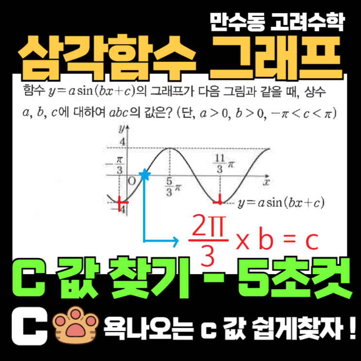 안녕하세요~ 성적이 오르는 만수동 수학학원 고려수학 캡틴샘 인사드립니다 ~ 바로 다음주면 2026학년도 1학기 중간고사가 치뤄지는대요 고2 학생들 대수 ( 수학1 ) 과목을 공부하시느라 고생이 많으십니다 특히나 삼각함수 부분을 많이 어려워하시는대요 그중에서도 모든 학교 중간고사에 무조건 출제되는 문제 y = a sin ( bx + c ) + d y = a cos ( bx + c ) + d 삼각함수의 그래프 a b c d 값 찾기 문제를 어려워하는 친구들이 많이 있더라구요 특히 a b d 는 금방 찾았는대 c 값을 못찾아서 틀리는 경우가 많은대요 이러면 정말 입에서 욕이 나올수 밖에 없죠 그래서 제가 c값 5초컷 할 수 있는 특별한 비법 두가지를 소개해드리....... <img src="https://blogthumb.pstatic.net/MjAyNjA0MjRfMjc1/MDAxNzc3MDA1MTg2NjMy.ntpEMpHtW12hJGjlTDOT3Q3c-bvLSI_oUDTMuhmuCwYg.Jb3Q4uiTG5vfar5VlIiaiXyff4_lL6sYiDy2wWZTticg.PNG/%C1%A6%B8%F1%C0%BB_%C0%D4%B7%C2%C7%D8%C1%D6%BC%BC%BF%E4_-001_-_2026-04-23T164706.461.png?type=s3" />