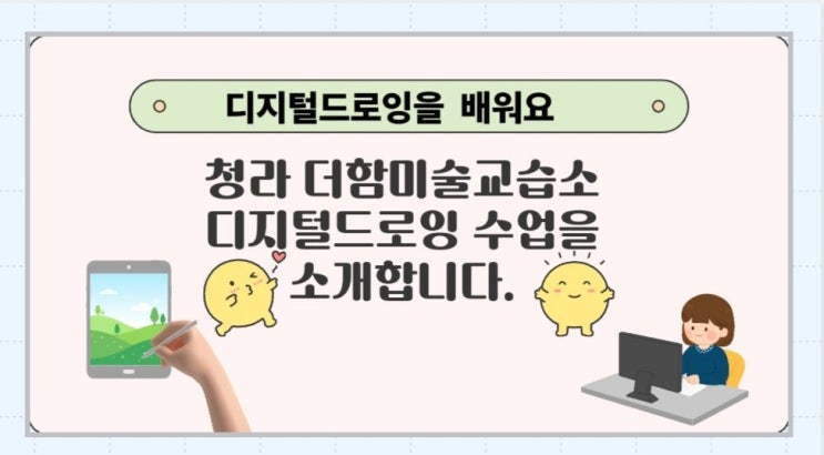 안녕하세요~ 청라더함미술교습소 입니다. 청라더함미술교습소는 청라동 청라초와 청라로 중 후문 공원길 일층에 위치하고 있습니다. 오늘은 청라더함미술교습소의 디지털 드로잉 수업에 대하여 이야기하려 합니다. 청라더함미술교습소는 프랜차이즈 교과연계 ART-PROJECT 아동미술, 수행평가를 위한 중등미술과 더불어 아트 드로잉 성인 미술을 하는 미술원입니다. 그 외 청라더함미술교습소는 아이패드와 태블릿으로 수업하는 디지털 드로잉의 수업을 하고 있는 미술원입니다. 요즘 친구들의 워너비 미래의 꿈의 하나 중 웹툰 작가나 일러스트 작가를 꿈꾸는 아이들이 많기에 미래의 아이들의 교육과 함께 달려가기 위해 청라더함미술교습소에서....... <img src="https://blogthumb.pstatic.net/MjAyNjAxMjFfMjE2/MDAxNzY4OTkzMTAyMjMy.Z-FMJmBvDWSwhpOrFY9QlRxMpzvuszQtIGPdVLaNIm8g.YFsMdThabjIlnfDdRFyssT44dxc88Rrcoa0T2DERqPMg.JPEG/Screenshot_20260121-195744_NAVER.jpg?type=s3" />