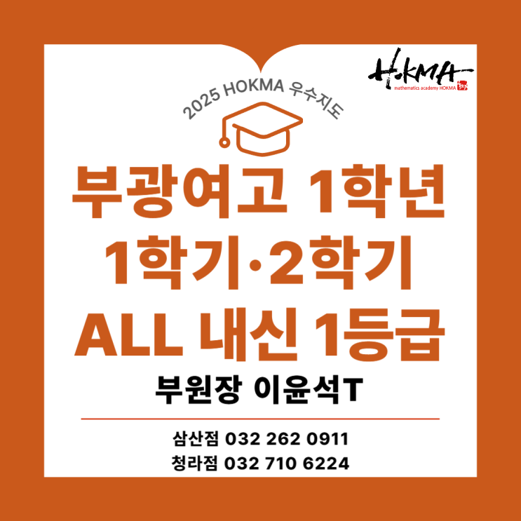 안녕하세요. 부개동 수학학원, 호크마수학학원입니다. 오늘은 고등학교 1학년 한 해 동안 1학기와 2학기 전 시험에서 모두 수학 1등급을 받은 부광여고 1학년 전OO 학생의 이야기를 들려드리려고 합니다. 중학생 때부터 성실하게 공부해 왔지만, 고등학교 입학을 앞두고 고등수학 심화 문제에 대한 막연한 두려움을 가지고 있던 한 학생이 어떻게 고교 내신에 빠르게 적응하고 흔들림 없는 최상위권 성적을 만들어낼 수 있었을까요? 부개동 수학학원 호크마 부원장 이윤석 선생님의 고1 우수지도 사례, 함께 살펴보겠습니다. Problem 부광여고 1학년 전OO 학생은 중학생 때부터 호크마와 함께하며 중학 내신을 탄탄하게 마무리한 학생이었습니다....... <img src="https://blogthumb.pstatic.net/MjAyNjAxMjdfMTcx/MDAxNzY5NDcwMjkzNzYx.UNFNO-0jTzSuJtKBcuweI0QPVMa2AGxoBFhgiLg1vZQg.jlysUyak-UAapcZ5GeHgixaTqkleW7UcN08CZAnfgv4g.PNG/001.png?type=s3" />